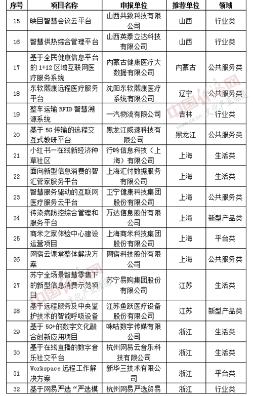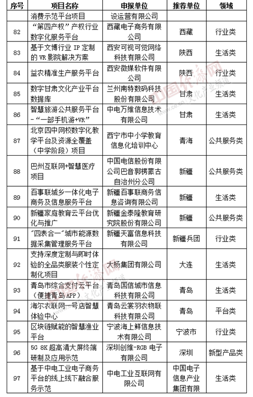 经济日报-中国经济网北京8月11日讯 日前,工业和信息化部公示了2020年新型信息消费示范项目,共100个项目入选。