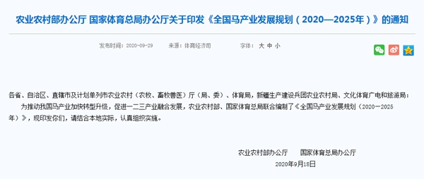 全国马产业发展规划(2020—2025年)