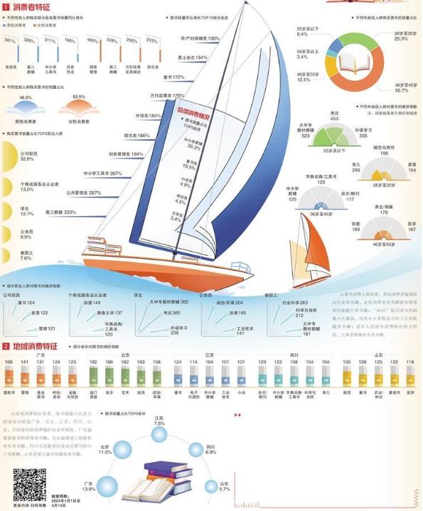 图书是人们求知的阶梯,也是不少人遇到现实问题时,寻找解决途径的重要选择。无论是学生、职场人、管理者,还是年轻父母、中老年人,不同的阅读偏好也体现出生活重心和关注点的区别。从图书消费人群来看,“80后”人群购买图书的销量占比最高,超过了50%。从图书销量及增长的占比情况来看,教辅类图书最受欢迎,增长势头十分强劲。