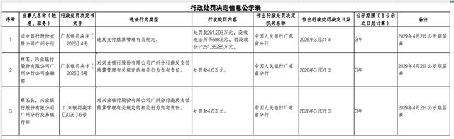 同时,兴业银行广州分行公司金融部的林某和交易银行部的蔡某良,因对相关行为负有责任均被处以4.6万元罚款。