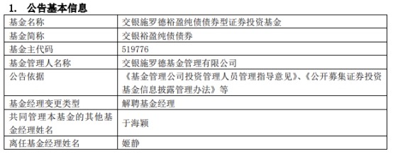 姬静离任交银裕盈纯债债券