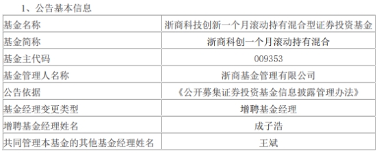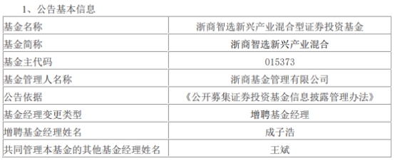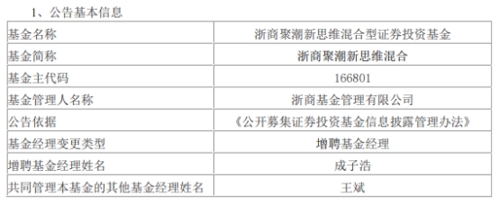 浙商基金3只基金增聘成子浩
