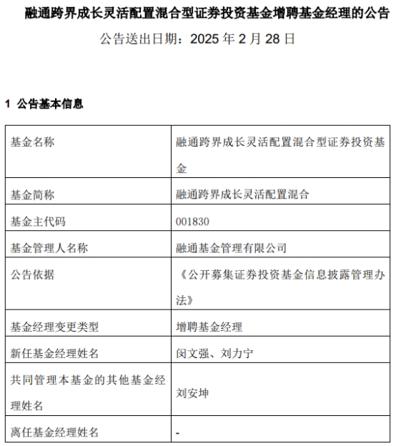 融通跨界成长灵活配置混合增聘闵文强与刘力宁