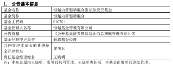 恒越基金王晓明离任2只混基