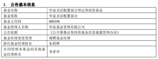 华富灵活配置混合增聘朱程辉