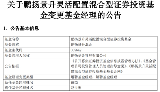 鹏扬景升混合增聘戴杰 赵世宏离任
