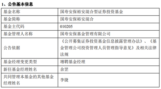 国寿安保稳瑞混合与国寿安保裕安混合增聘余罡