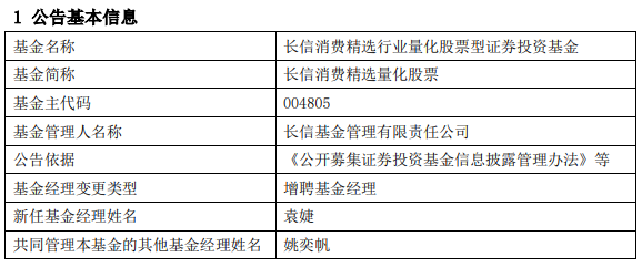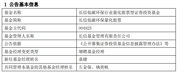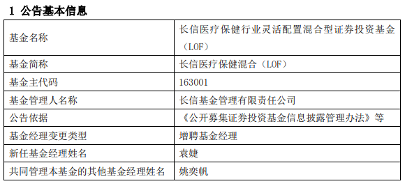 中国经济网北京4月10日讯 今日,长信基金管理有限责任公司公告称,长信医疗保健混合(LOF)(A类163001;C类013154)、长信低碳环保量化股票(A类004925;C类013151)、长信消费精选量化股票(A类004805;C类013152)增聘基金经理袁婕。