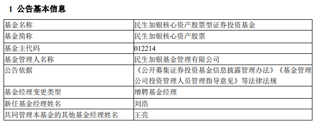 民生加银核心资产股票增聘刘浩 成立来累计亏损35%