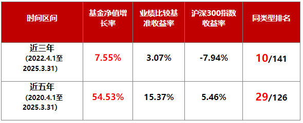 数据说明:基金业绩及业绩比较基准数据来自基金定期报告;市场指数数据来自万得信息;排名数据来自银河证券2025.04.02公布,基金分类为偏股型基金(股票上限80%)(A类)。