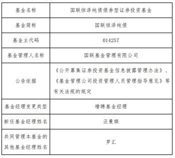 中国经济网北京6月25日讯 今日,国联基金公告,国联恒泽纯债增聘汪曼琪。