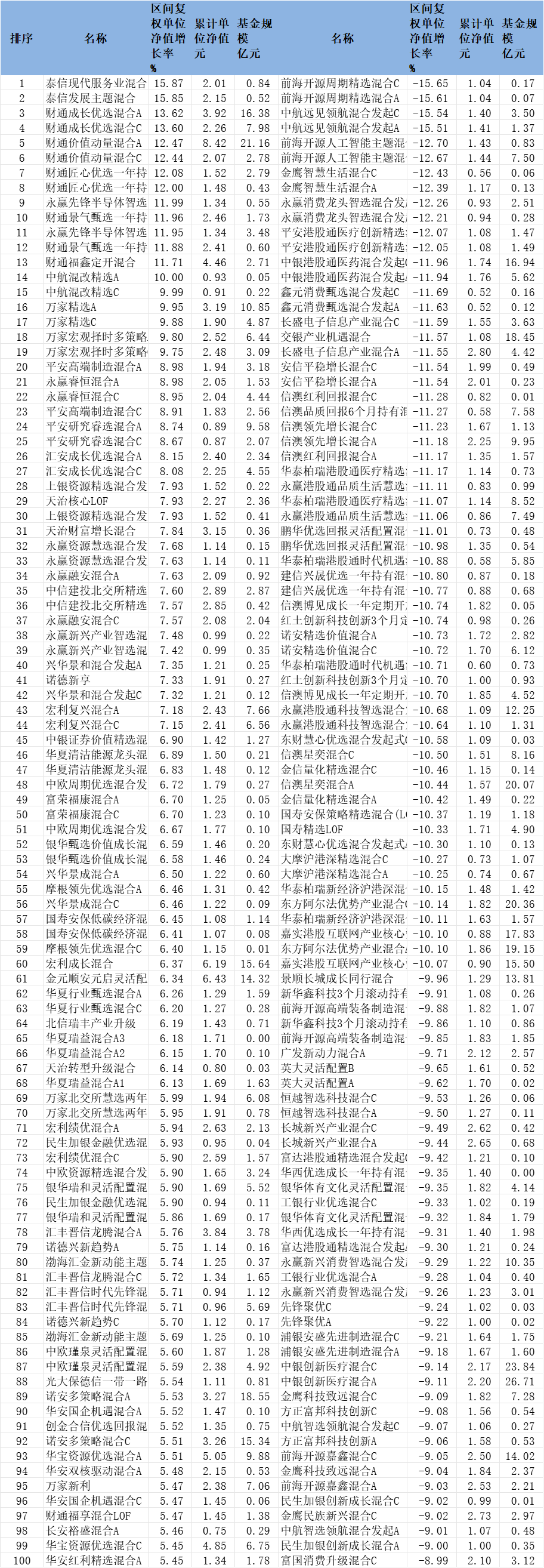 2025年10月份混合型基金涨跌幅前100名