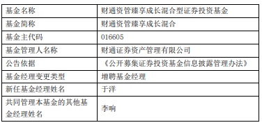 中国经济网北京3月30日讯 近日,财通证券资产管理有限公司公告,财通资管臻享成长混合增聘于洋。