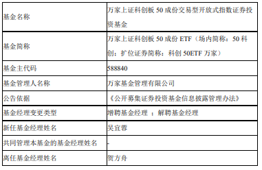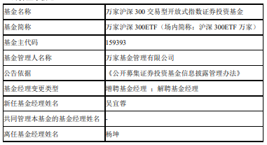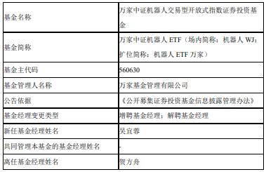中国经济网北京330日讯 近日,万家基金公告,万家沪深300ETF、万家上证科创板50成份ETF、万家中证机器人ETF增聘吴宜蓉。