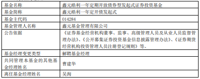 吴洵离任鑫元皓利一年定开债发起式