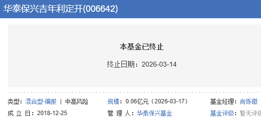 该基金的最后运作日为2026313日,并于2026314日进入清算程序。
