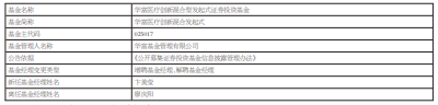 中国经济网北京4月2日讯 今日,华富基金公告,华富医疗创新混合发起式增聘卞美莹,廖庆阳离任。