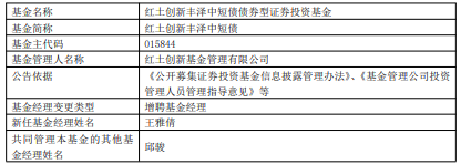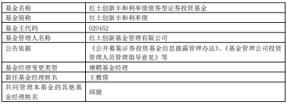 红土创新丰和利率债红土创新丰泽中短债增聘王雅倩