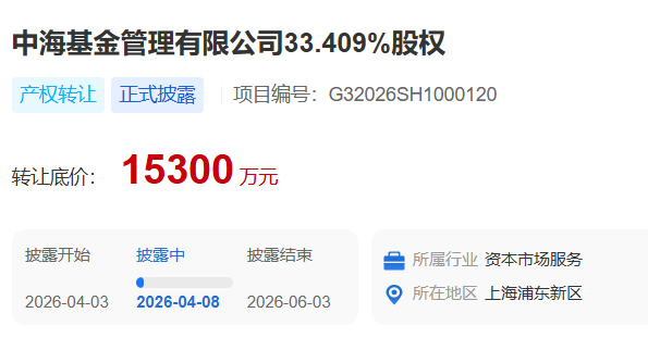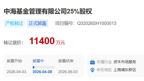 两大股东同步离场!中海基金58.41%股权“打包”转让