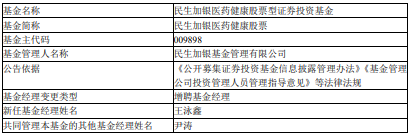 民生加银医药健康增聘王泳鑫 A份额成立近6年亏损50%