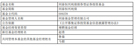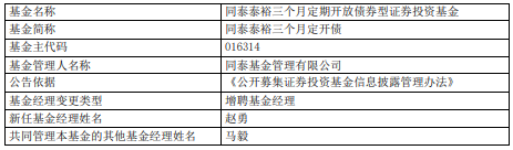 中国经济网北京4月16日讯 今日,同泰基金公告,同泰同欣混合、同泰泰裕三个月定开债、同泰恒兴纯债、同泰泰和三个月定开债增聘赵勇。