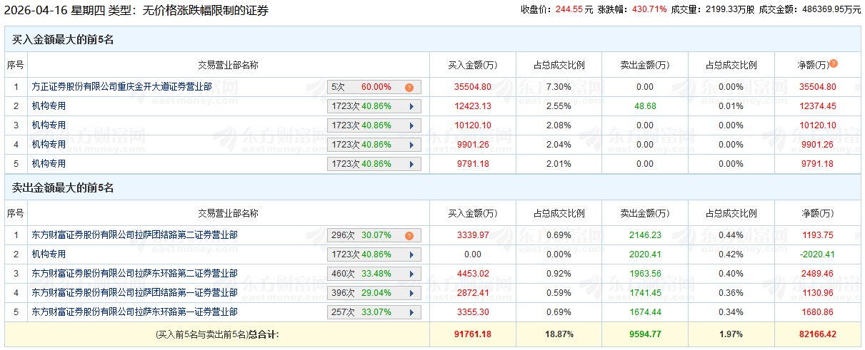 中国经济网北京4月16日讯 今日,大普微(301666.SZ)收报244.55元,涨幅430.71%。