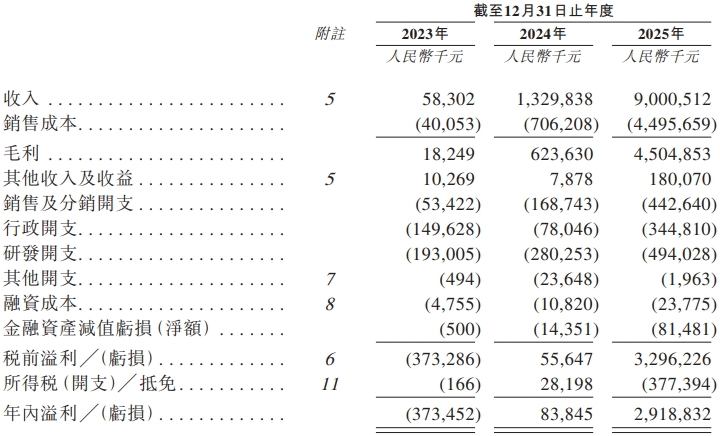 思格新能于2023年录得净亏损人民币373.5百万元,于2024年及2025年分别录得净利润人民币83.8百万元及人民币2,918.8百万元。
